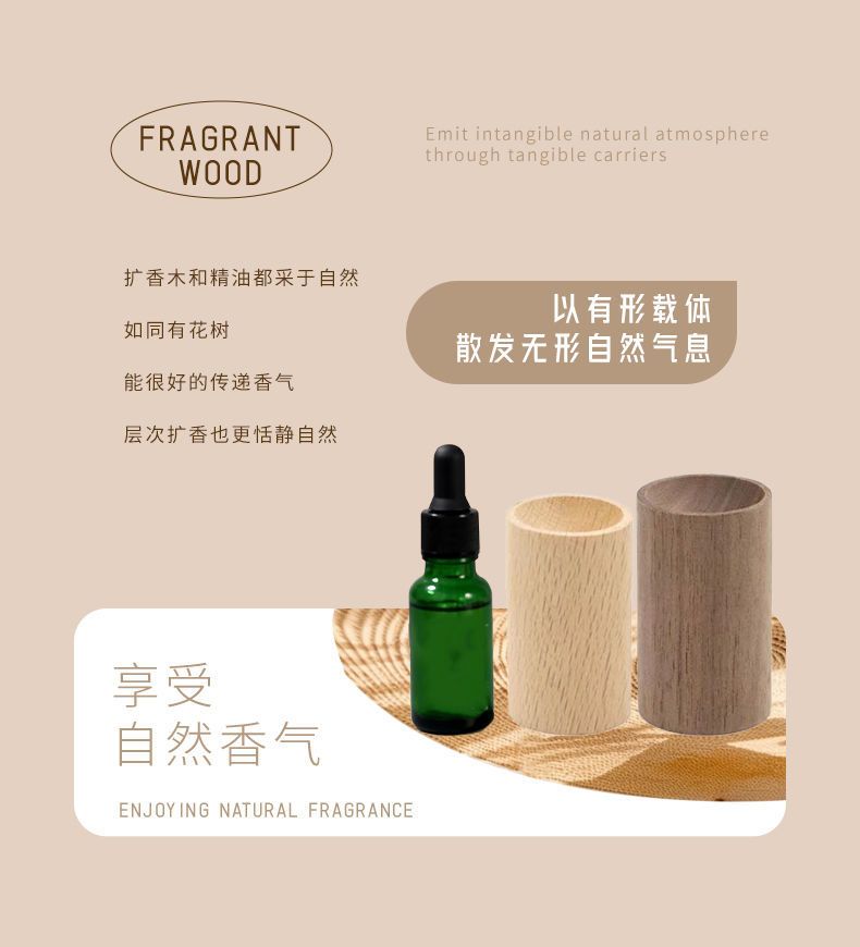 家用圆柱扩香木驱蚊香氛卧室衣橱持久挥发花露水实木摆件车载扩香