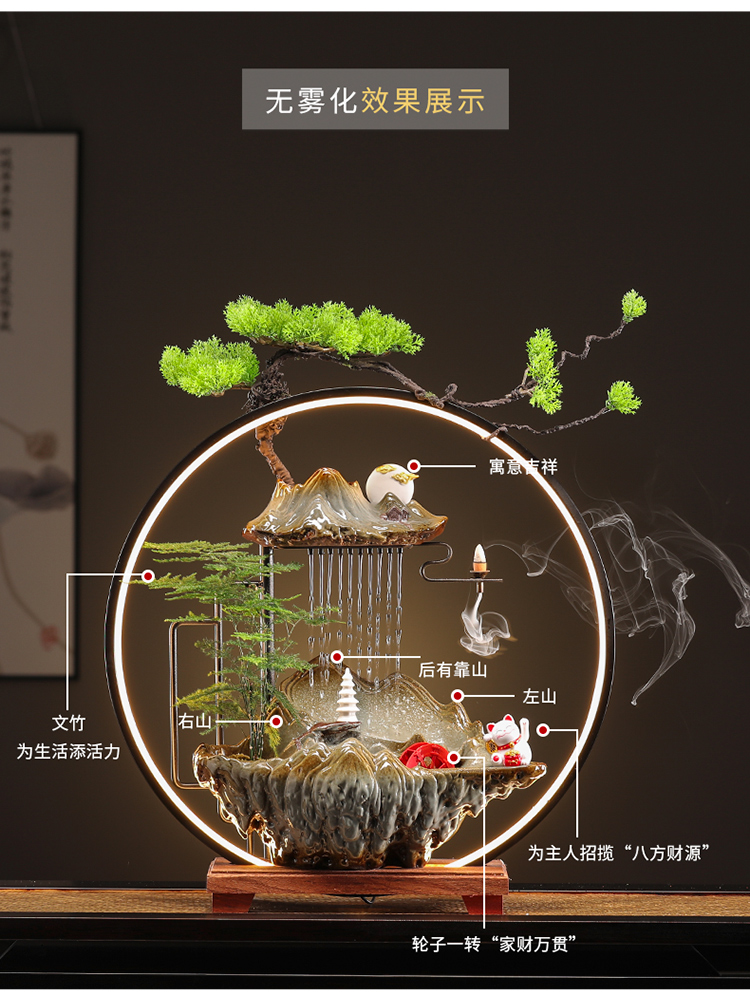 新中式流水生财摆件家居客厅循环水风水轮招财猫新家乔迁开业礼物